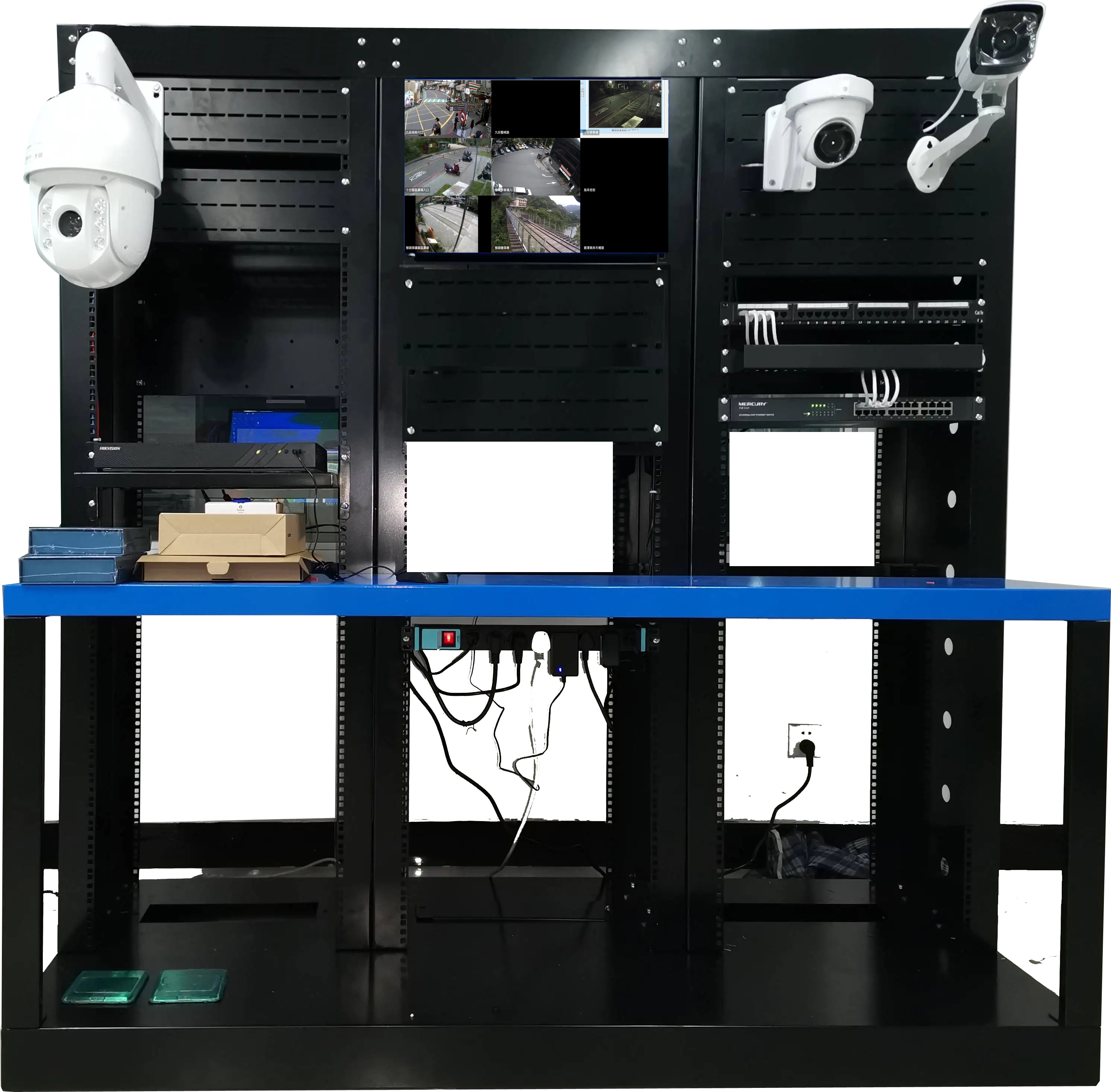 1、交通視頻監(jiān)控研發(fā)實訓平臺:長≥1.8米,寬≥0.7米,高≥1.8米,可容納8個學生實驗;交通視頻監(jiān)控操作臺分為設備裝配區(qū)、集成接線區(qū)和操作區(qū);操作臺臺面板和框架采用2mm優(yōu)質(zhì)電鍍鋅板,側(cè)板、柜門等部分采用1~2mm的優(yōu)質(zhì)電鍍鋅板制作,達到IP23防護等級;表面處理:零件經(jīng)過脫脂、酸洗、防銹磷化后,靜電噴塑處理;操作臺背面配置二三插座電源;操作臺底部由多層、多抽屜柜組成,臺面進行設備組裝、維修等工作,獨立可控電源;設備統(tǒng)一掛載插件式安裝,所有數(shù)據(jù)線、電源線等預留,方便單件與集成課程的教學;模塊化設計,多種附件可視需要任意組合,且具有互換性;臺面具有防靜電、防火、耐磨。
