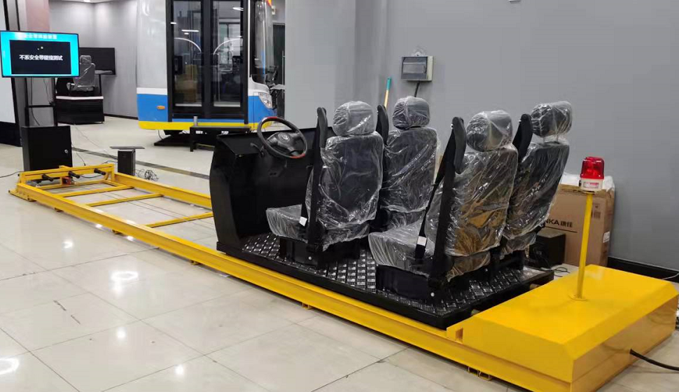 3、軟件功能 :碰撞速度(15~35km/h)可調(diào); 采用電機(jī)牽引滑動(dòng)平臺(tái),在導(dǎo)軌上滑動(dòng),體驗(yàn)者切身感受車(chē)輛在碰撞過(guò)程中的沖擊的力度和安全系數(shù)都在屏幕上顯示出來(lái),在給定速度(低速、中速、高速)下碰撞碰撞體,達(dá)到體驗(yàn)碰撞效果、了解碰撞力度及體驗(yàn)安全帶使用效果的目的。交通安全碰撞實(shí)驗(yàn)體驗(yàn)增強(qiáng)體驗(yàn)者在駕車(chē)乘車(chē)時(shí)系好安全帶的安全意識(shí)。碰撞整過(guò)程有同步錄像并軟件有回放功能,通過(guò)軌道前的高清液晶屏幕顯示。