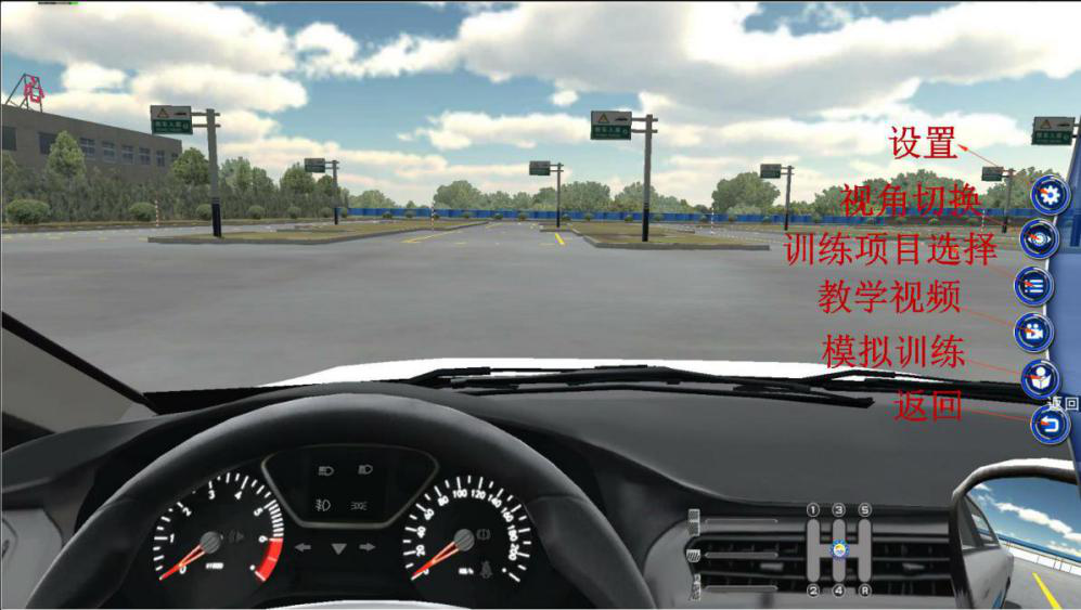 4-1.基礎(chǔ)訓(xùn)練:包含上下車、視角調(diào)節(jié)、點火練習(xí)、方向盤練習(xí)、踏板練習(xí)、手剎練習(xí)、手動檔位練習(xí)、練習(xí)燈光雨刮、起步靠邊停車。