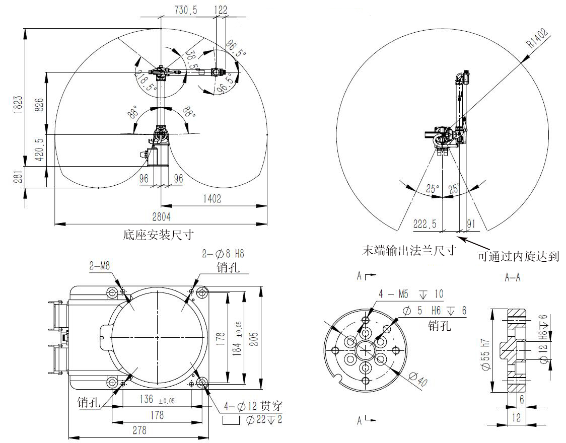 三、工業(yè)機(jī)器人運(yùn)動(dòng)范圍參數(shù)圖