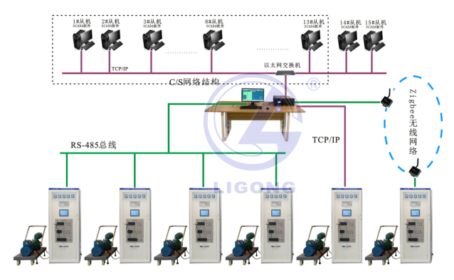 (7)采用C/S網(wǎng)絡(luò)結(jié)構(gòu)配置主站和客戶機(jī),主站對(duì)客戶機(jī)進(jìn)行故障設(shè)置,實(shí)時(shí)監(jiān)控管理與考核等功能;