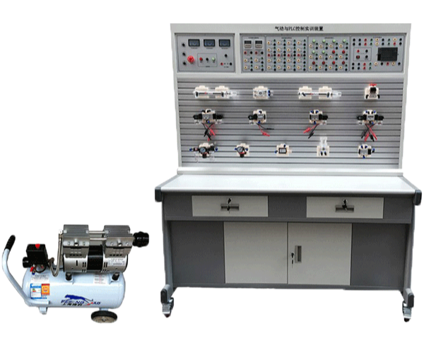 一、氣動與PLC實訓裝置主要特點 1、LG-YY18C型 氣動與PLC實訓裝置(T型鋁槽單面)主要由實訓桌及實訓臺、氣動元件和電氣控制器件、可編程控制器(PLC)等組件組成。 2、配...