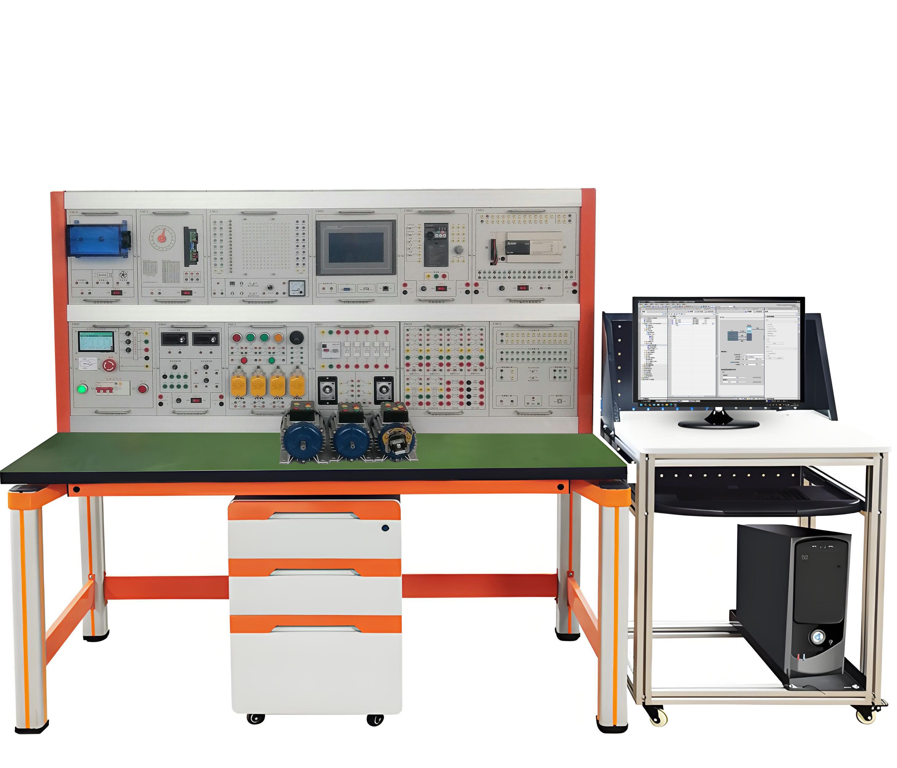 3、技能培訓(xùn)用的控制線路和配套的小電機(jī)經(jīng)特殊設(shè)計(jì),可模擬工廠各類(lèi)電機(jī)的電力拖動(dòng)系統(tǒng), 并可滿足維修電工的安裝、調(diào)試、故障分析及排除故障等技能訓(xùn)練要求;