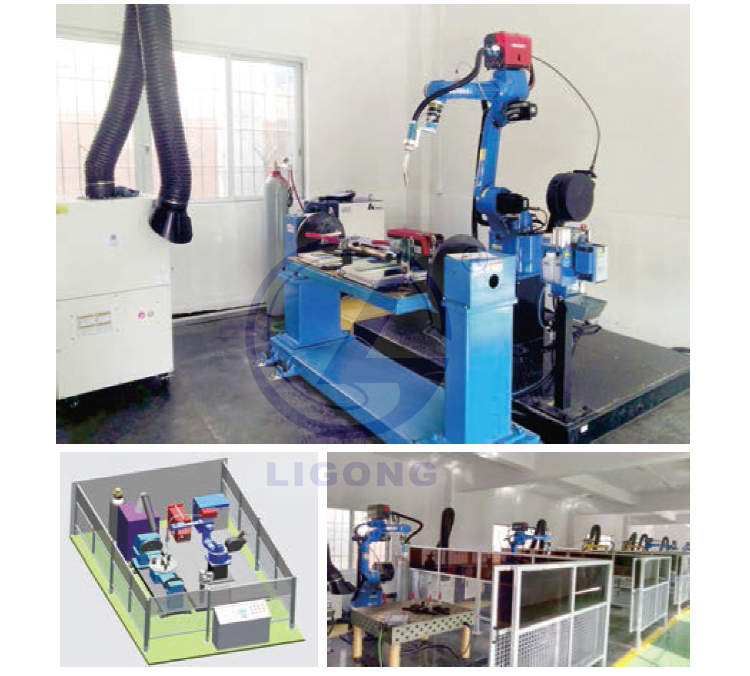 LGH-HJ12型 工業(yè)機器人焊接實訓(xùn)平臺由LG-ZN612型工業(yè)機器人和焊機,送絲機,焊槍及清槍裝置,保護氣體設(shè)備,工作臺、工裝夾具、變位機,安全系統(tǒng)(圍欄、光柵、自動門、門鎖等),排煙系統(tǒng)等組成。工業(yè)機器人焊接工作站可以完成不同工件的直縫焊,船型焊,弧形焊等工作:利用計算機控制下的連續(xù)軌跡或者點位控制、焊接跟蹤技術(shù)、焊接檢測技術(shù)等,實現(xiàn)生產(chǎn)中各種焊接需求。