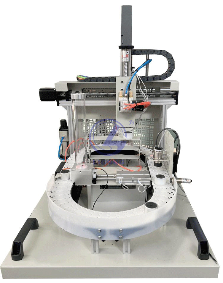 LG-JD02A型 機電一體化實訓工作站采用“模塊化”的設計理念,標準化電路接口、氣路接口和機械接口??傮w由工作臺、電氣控制掛板、環(huán)形輸送分揀應用模塊等構成。 工作站包含實訓平臺、控制掛板、應用模塊、電腦桌組成,實訓平臺采用優(yōu)質(zhì)鋁型材做骨架,鋁型材立柱與實訓桌面連接。左右兩側(cè)及后面封裝優(yōu)質(zhì)鋼板,正面設計儲物柜與抽屜。