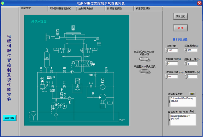 (3)檢測功能:壓力、流量、位移、轉速及速度、溫度、電壓、電流及各種仿真參數(shù)實時曲線顯示,并能夠將檢測到的實時仿真參數(shù)以文本的形式導出;