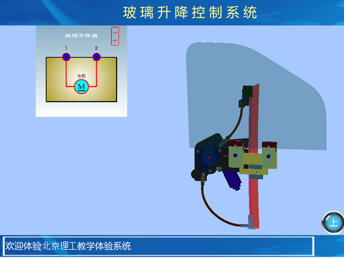玻璃升降器虛擬仿真教學(xué)軟件中的電動機是由雙聯(lián)開關(guān)按鈕控制,設(shè)有升、降、關(guān)等三個工作狀態(tài),開關(guān)不操縱時自動停在 " 關(guān) " 的位置上??v電路設(shè)有總開關(guān)(中央控制)和分開關(guān),兩者線路并聯(lián)。在汽車軟件教學(xué)中也能完全展現(xiàn)出來,適用于各類院校教學(xué),歡迎定制!
