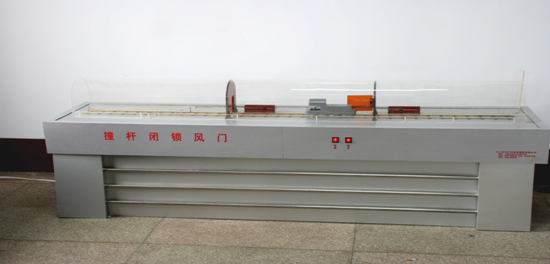 該井下各種風(fēng)門演示裝置(適合于二、三、四級),采用電傳動(dòng),使電機(jī)車在軌道行走,演示各種閉鎖風(fēng)門的開關(guān)原理。