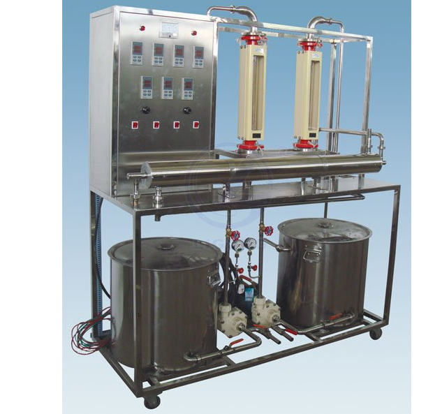 套管換熱器、熱水箱、熱水泵、液體流量計、溫控儀表、壓力儀表、實驗臺架、控制屏等。