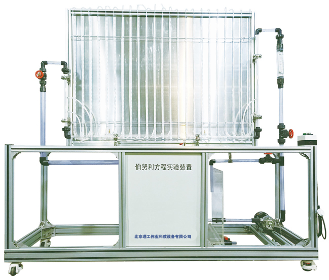2、演示板:表面噴塑鋁板,配水平坐標(biāo)線。優(yōu)質(zhì)有機(jī)玻璃測(cè)壓管,可測(cè)定分析各測(cè)壓點(diǎn)的壓力變化情況。304不銹鋼低位槽,容積:80L。