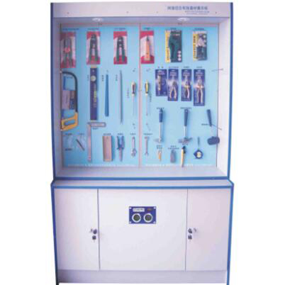 2、智能樓宇綜合布線工具展示柜由全鋼多功能螺孔展板+亞克力玻璃門結(jié)構(gòu)。