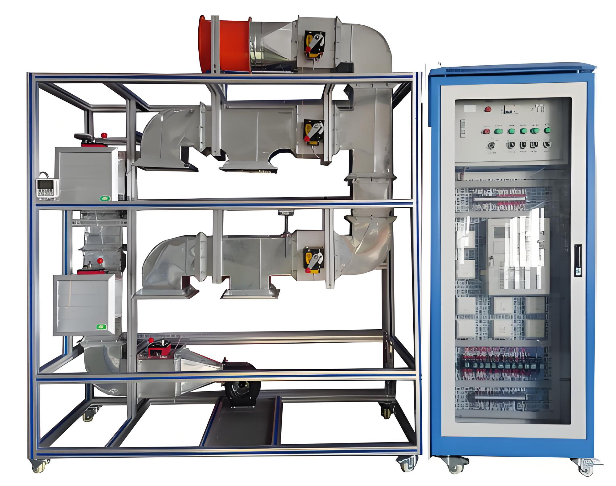 1、風(fēng)系統(tǒng)整體放置在一個(gè)2000mm×1000mm×800mm平臺(tái)上,可移動(dòng),平臺(tái)上風(fēng)系統(tǒng)由不燃材料制作,系統(tǒng)中設(shè)置有閥門(mén),風(fēng)機(jī),子系統(tǒng),出風(fēng)口等。