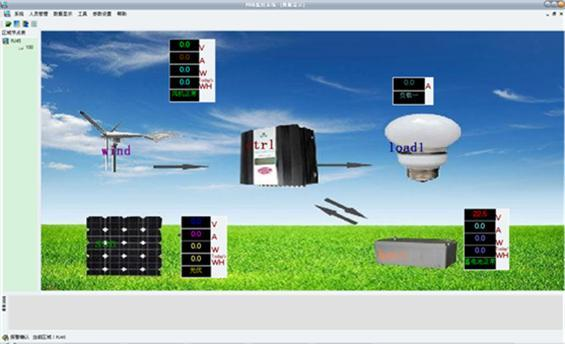 (2)顯示內(nèi)容:蓄電池電壓、風(fēng)機(jī)電壓、光伏電壓、風(fēng)機(jī)電流、光伏電流、風(fēng)機(jī)功率、光伏功率,能量模擬圖,當(dāng)前風(fēng)速(米/秒),當(dāng)前風(fēng)向(度),當(dāng)前風(fēng)力資源平估。