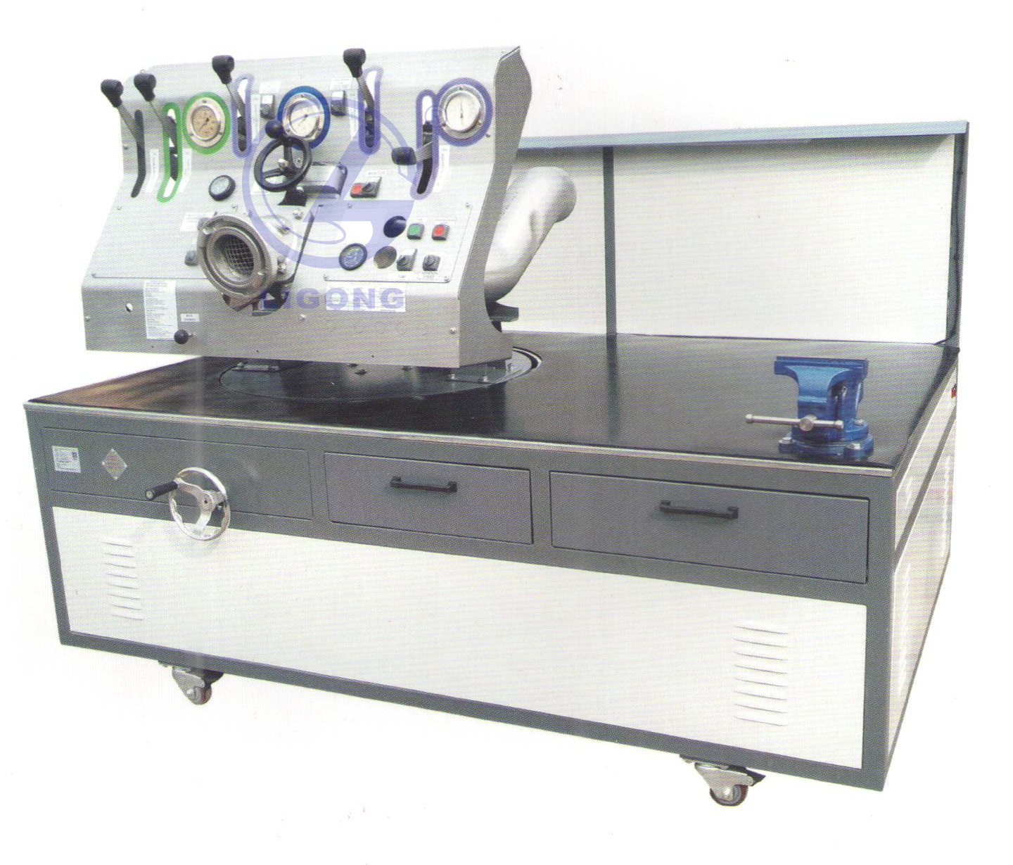 1、由消防泵、操作演示臺架、固定旋轉(zhuǎn)平臺、零部件固定擺放夾具、工具箱及拆裝工具一套等組成。配備進(jìn)口單級車載消防泵。
