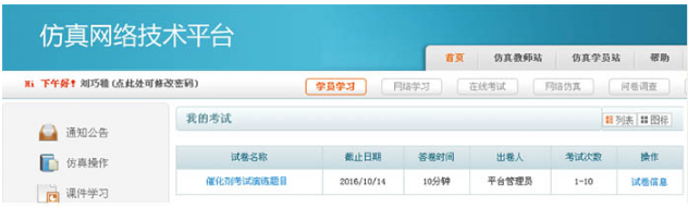 可通過平臺建立仿真試卷,用于學(xué)員培訓(xùn)、自測及考試。仿真試卷方案可保存、可修改,可多次重復(fù)使用。