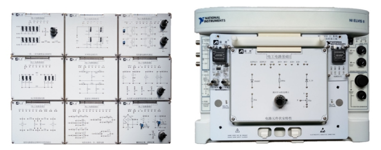 本設(shè)備是將電工電路實(shí)際應(yīng)用中單元電路模塊化。通過(guò)與NI ELVIS 結(jié)合使用,電路功能測(cè)試是通過(guò)NI ELVIS 平臺(tái)專(zhuān)用的轉(zhuǎn)接口進(jìn)行連接,不在需要其他外部電源信號(hào)進(jìn)行連接,并且電路的測(cè)量是通過(guò)NI ELVIS 平臺(tái)集成了12款常用虛擬儀器進(jìn)行測(cè)量其功能參數(shù),可通過(guò)USB接口與PC連接,實(shí)現(xiàn)快速易用的測(cè)量采集及顯示,并能在統(tǒng)一平臺(tái)上實(shí)現(xiàn)多用戶(hù)多應(yīng)用,因此降低了成本。NI ELVIS可實(shí)現(xiàn)各類(lèi)應(yīng)用,從而幫助各學(xué)科中不同學(xué)習(xí)進(jìn)度的學(xué)生。從電路基礎(chǔ)學(xué)習(xí)到進(jìn)行研究工作,都可在同一平臺(tái)上實(shí)現(xiàn)。便于教師的教學(xué)和學(xué)生的認(rèn)識(shí),所有實(shí)訓(xùn)的內(nèi)容均由學(xué)生通過(guò)電子連接線(xiàn)搭接,培養(yǎng)學(xué)生的動(dòng)手能力以及解決問(wèn)題的能力。