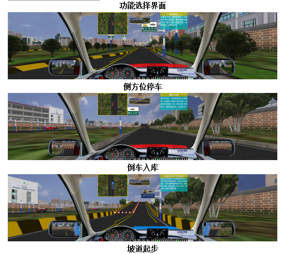 | 新軟件功能:小車(科目二)場地5項分別為:倒車入庫、坡道定點停車和起步、側方停車、曲線行駛、直角轉彎;大車(科目二)場地16項分別為:樁考、坡道定點停車和起步、側方停車、通過單邊橋、曲線行駛、直角轉彎、通過限寬門、通過連續(xù)障礙、起伏路行駛、窄路掉頭、模擬高速公路、連續(xù)急彎山區(qū)路、隧道、雨天、霧天濕滑路、緊急情況處置。新版汽車駕駛模擬器軟件道路駕駛技能考試(科目三)內容包括:上車準備(系安全帶)、起步、直線行駛、加減擋位操作、變更車道、靠邊停車、直行通過路口、路口左轉彎、路口右轉彎、通過人行橫道線、通過學校區(qū)域、通過公共汽車站、會車、超車、掉頭、夜間行駛等訓練考試項目。 | ||