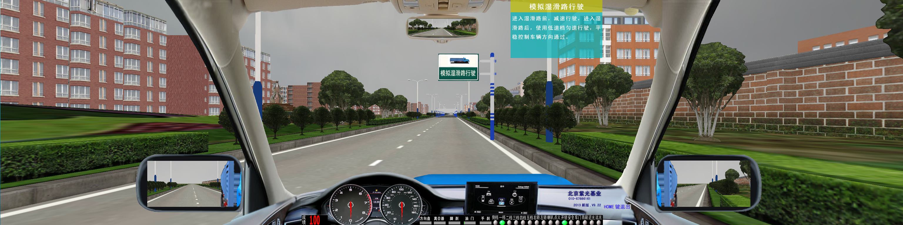 炫目道路:(朝九晚五的太陽(yáng))炫目會(huì)車(chē),炫目駕駛鄉(xiāng)村道路等。泥濘道路:泥濘洼地道路駕駛(方向、制動(dòng)、驅(qū)動(dòng)有打滑滯后感)場(chǎng)景模型取鄉(xiāng)村道路,道路變?yōu)槟酀魻顟B(tài)。石子路面:汽車(chē)在其上面行駛,遇到剎車(chē)時(shí)剎不住車(chē),還可汽車(chē)還在繼續(xù)滑動(dòng),有時(shí)還會(huì)斜向滑行,極難控制感,汽車(chē)在石子路面里滑動(dòng)。涉水道路:涉水駕駛汽車(chē)有水流沖力對(duì)車(chē)輛的前進(jìn)阻力感光及側(cè)滑感,輪胎與水下的路壓力減小,驅(qū)動(dòng)力受到限制,使行駛受阻感覺(jué)。專項(xiàng)訓(xùn)練:要附合交通部要求。系統(tǒng)評(píng)分:每次駕駛結(jié)束,系統(tǒng)自動(dòng)評(píng)分。山區(qū)到路:突出坡多、彎多、凹凸路面、駕駛環(huán)境復(fù)雜、有側(cè)風(fēng)、有陡坡長(zhǎng)坡、溜坡、側(cè)滑(有語(yǔ)音提示)。鄉(xiāng)村道路:含鐵道路口;加油站,公交車(chē)站、單行道、農(nóng)田道口等;城市道路:含公交站臺(tái),高架立交橋、公交專用道、十字路口、丁字路口、環(huán)島、隧道、單行道、雙黃線、加油站、商場(chǎng)百貨門(mén)口斑馬線天橋,學(xué)校門(mén)口及紅綠燈,行人、非機(jī)動(dòng)車(chē)亂穿馬路及非機(jī)動(dòng)車(chē)等。高速公路:包括收費(fèi)站(入、停、出、)服務(wù)區(qū)、緊急帶、匝道行駛、超車(chē)道、行車(chē)道、隧道、立交橋、交通標(biāo)牌標(biāo)線。危險(xiǎn)場(chǎng)景:視線不清的交通情況下,超車(chē)后突然切入他人道引起被超車(chē)輛緊急制動(dòng)、自行車(chē)、行人突然橫穿馬路,路面維修,障礙物繞行等 危險(xiǎn)場(chǎng)景、專項(xiàng)駕駛:危險(xiǎn)道路、眩目道路、爆胎體驗(yàn)、緊急避讓、趣味駕駛等駕駛科目。 |