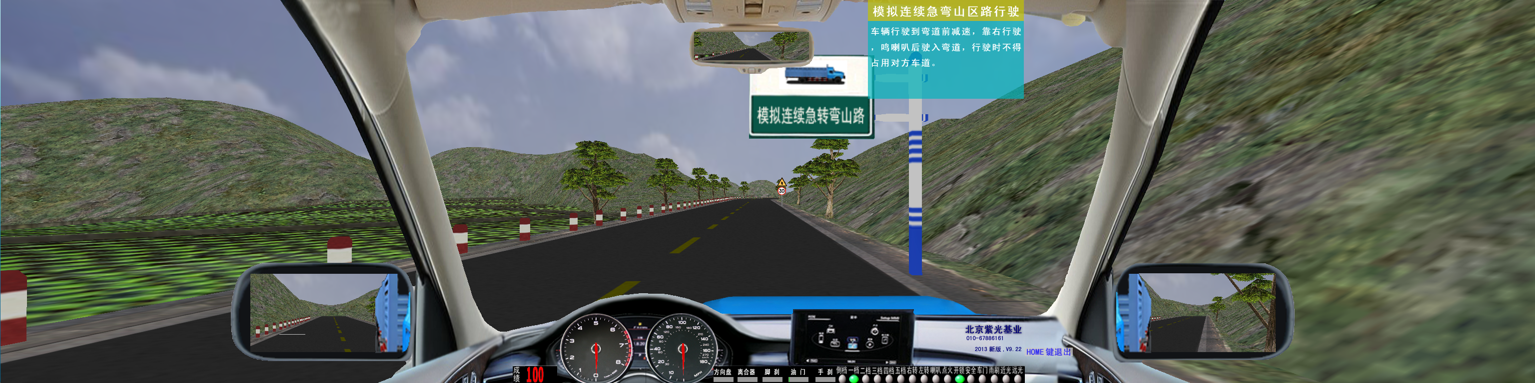c.模擬儀表顯示:方向、油門(mén)、離合器、腳剎車(chē)、手制動(dòng)演示操作進(jìn)度;指示燈、時(shí)速、里程、發(fā)動(dòng)機(jī)轉(zhuǎn)速均有在模擬儀表上顯示。