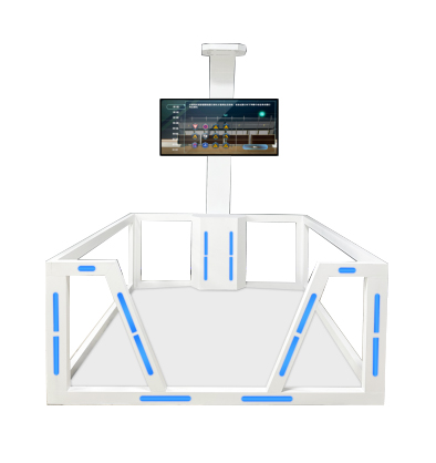 1、包含顯示屏幕、主機(jī)、頭戴設(shè)備、行走平臺(tái)、護(hù)欄等。
