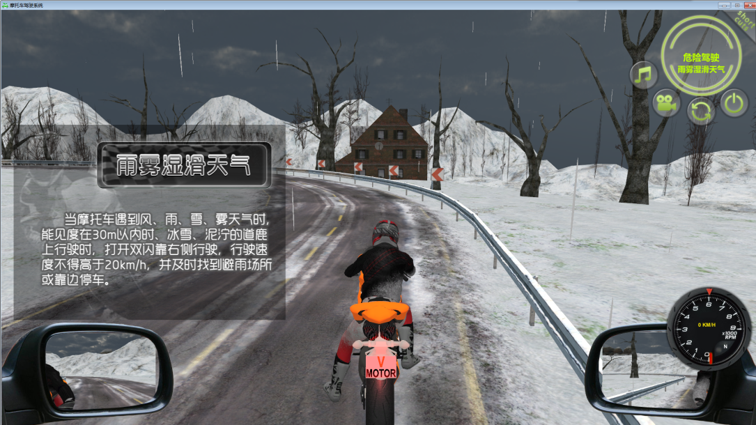 《摩托車安全模擬駕駛系統(tǒng)》本款軟件主要針對摩托車安全模擬駕駛,利用3D仿真技術(shù)分別模擬了騎行練習(xí),路上練習(xí),障礙練習(xí)3種體驗項目。在體驗過程中更能加強用戶對交通安全的重視,杜絕不文明的駕駛行為!