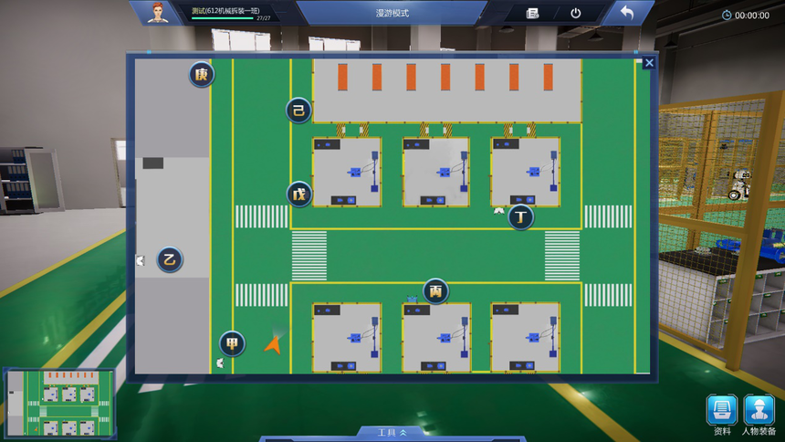 9、友好操作體驗設計:設置專用工具欄,可以通過工具欄中的快捷鍵快速選擇工具,提高實訓系統(tǒng)使用效率,同時加深對工具的認識。地圖及快速跳轉(zhuǎn)、箭頭指示多形式導航,通過小地圖實現(xiàn)快速跳轉(zhuǎn)到機器人NPC獲得指引。地標指引箭頭,有效提示下一任務的操作位置。