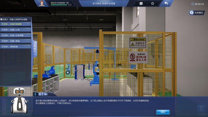 5、沉浸式體驗設計:選擇實際生產(chǎn)中典型工作任務,融合了崗位職業(yè)技能與專業(yè)技術(shù),進行沉浸式學習情境設計,學習者通過實訓系統(tǒng)中的任務提示、NPC指引、語音等完成具體任務,逼近真實的實訓操作。
