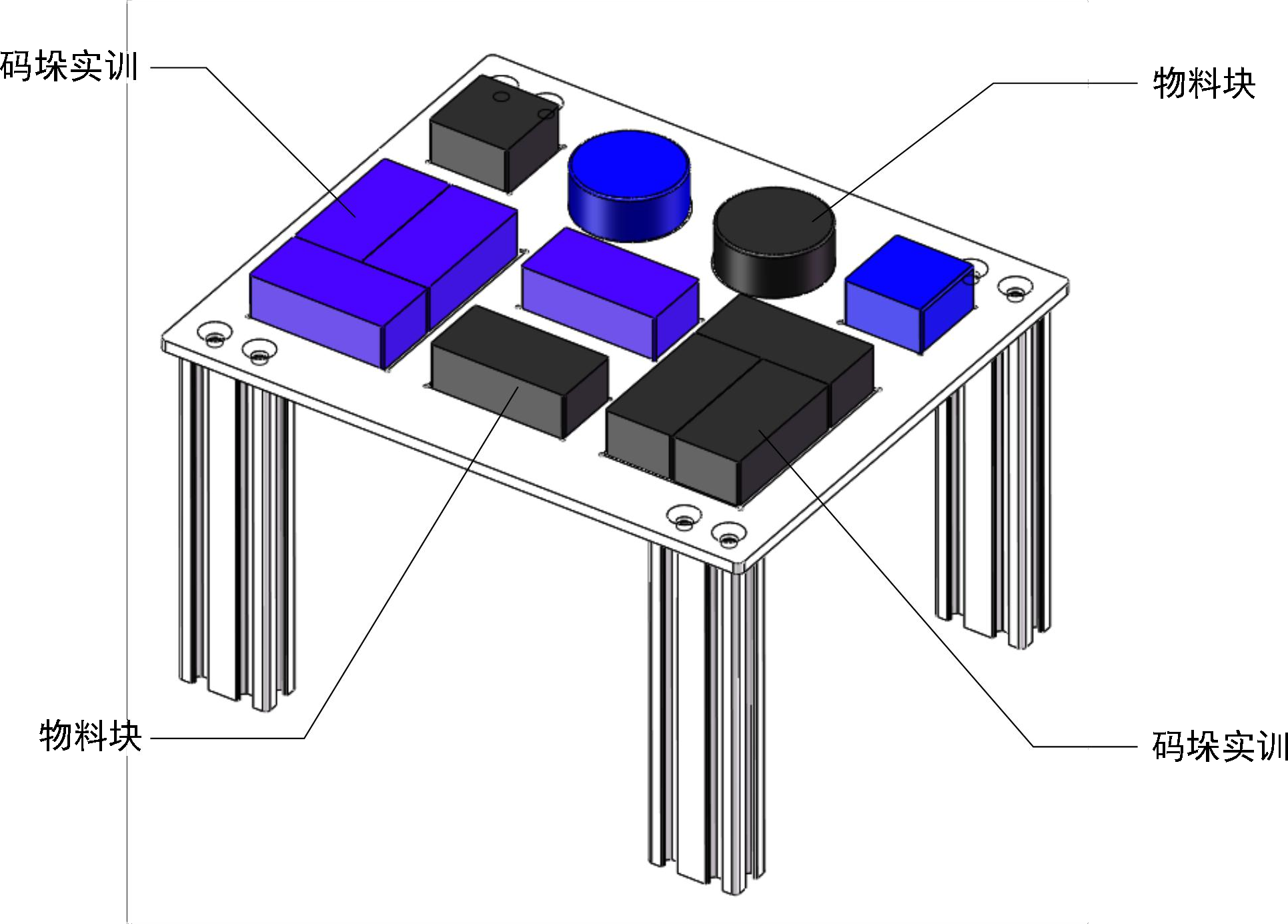 臺(tái)面上所有功能部件采用模塊化設(shè)計(jì),臺(tái)面上所有功能模塊具有可拆卸、可重復(fù)利用的優(yōu)點(diǎn)。每個(gè)模塊都有獨(dú)立的氣路和電路系統(tǒng),模塊間留有氣源和線路接口。學(xué)??梢愿鶕?jù)教學(xué)需要進(jìn)行不同模塊的選配,在不同的情況下通過不同的組合達(dá)到不同的教學(xué)效果,功能模塊可以自由增減,搭配非常靈活。同時(shí),學(xué)生在對(duì)機(jī)器人設(shè)備有一定的了解后,可對(duì)臺(tái)面進(jìn)行二次開發(fā),根據(jù)興趣和需要自主設(shè)計(jì)趣味性或競(jìng)賽性模塊,很大程度上提高了學(xué)生的學(xué)習(xí)興趣。