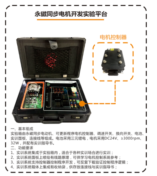 一、產(chǎn)品功能: 基于純電動汽車永磁電機控制系統(tǒng),采用永磁直流電機、電機驅(qū)動器、智能工況模擬系統(tǒng)、動力電池系統(tǒng)、整車控制器系統(tǒng)、組合儀表、系統(tǒng)工作參數(shù)顯...
