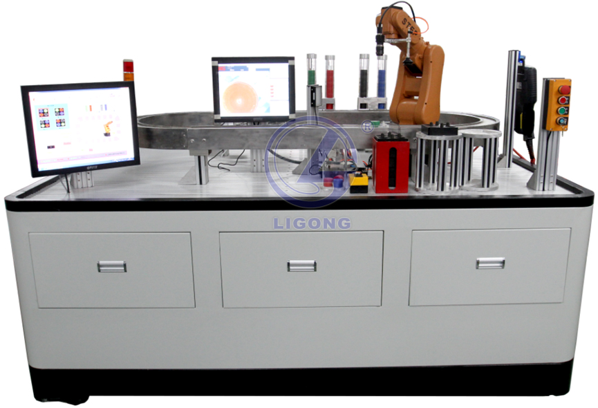 LG-GJQS1型 工業(yè)機器人與智能視覺系統(tǒng)應用實訓平臺各組件均安裝在型材桌面上,機械結構、電氣控制回路、執(zhí)行機構相對獨立,采用工業(yè)標準件設計。通過此平臺可以進行機械組裝、電氣線路設計與接線、PLC編程與調(diào)試、智能視覺流程編輯、工業(yè)機器人編程與調(diào)試應用等多方面訓練,適合職業(yè)院校、技工學校自動化類相關專業(yè)《工業(yè)機器人與控制技術》、《自動化技術》等課程的實訓教學,適合自動化技術人員進行工程訓練及技能比賽。
