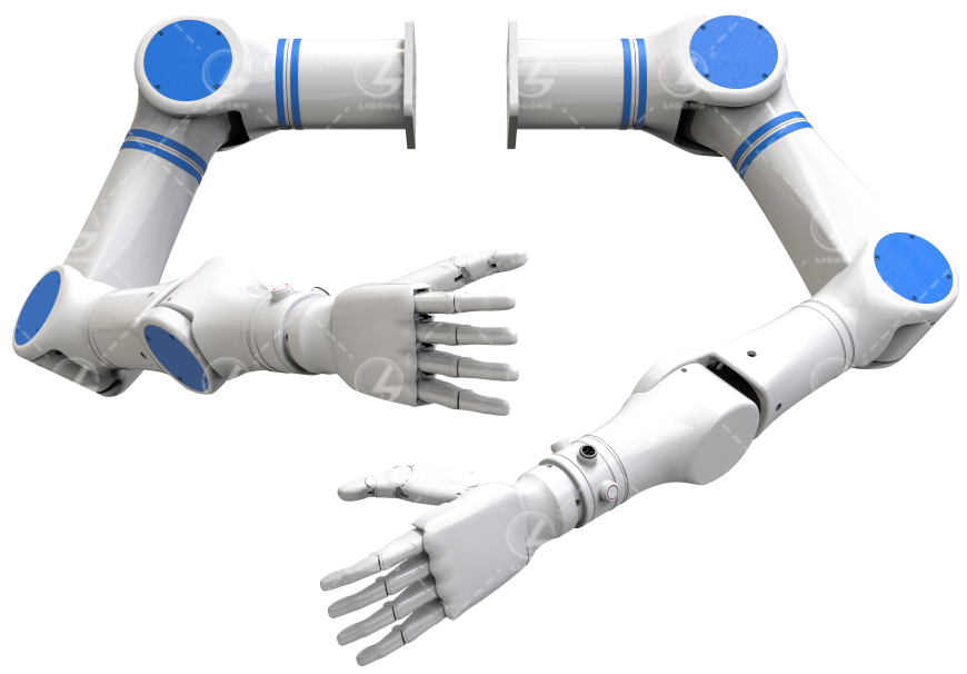 本產(chǎn)品是一款專為人形機器人開發(fā)的七軸協(xié)作機器人,完全符合人體的肩關(guān)節(jié)、肘關(guān)節(jié)、腕關(guān)節(jié)型態(tài),高度還原人類手臂的自由度。手臂采用一控二的控制系統(tǒng),即一個控制器控制兩臺手臂,可以有效的實現(xiàn)雙臂協(xié)同與沖突規(guī)避。同時,手臂還配備電子皮膚,具備預(yù)碰撞感知功能,在運動過程中,可實時感知與周圍人體的距離,當(dāng)兩者距離≤10cm時,手臂將自動停止,確保人員的安全。