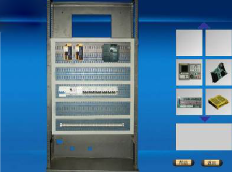 6. 數(shù)控機(jī)床電氣連接中包括了數(shù)控機(jī)床多個元器件的組裝和連線。在元器件組裝中可以將右邊的元器件拖到機(jī)床上進(jìn)行組裝,在組裝完成后,點(diǎn)擊機(jī)床上的元器件將進(jìn)入連線界面進(jìn)行界面,完成數(shù)控機(jī)床電氣連接操作。