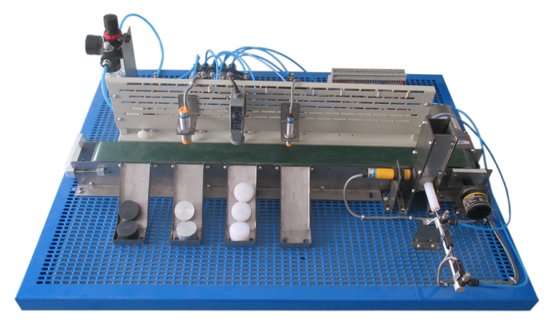 LGCL-02型 材料分揀控制模型以800*600的金屬網(wǎng)孔板為安裝平臺,配備PLC主機(選配)、傳送帶裝置、落料倉裝置、氣缸電磁閥裝置、氣源處理器、各種傳感器、物料導槽等可以根據(jù)師生自己的設計思路進行安裝調(diào)試。落料倉、傳送帶、傳感器支架等均采用不銹鋼材料制作,加工全部采用數(shù)控技術(shù)加工保證每個安裝元件的一直性。