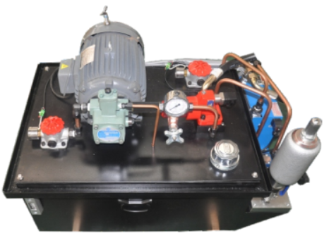 液壓泵站由三相電機、變量葉片泵、單向閥、 風(fēng)冷器、空氣濾清器、油溫油面計、精密過濾器、壓力表、蓄能器、泄壓閥組等組成。