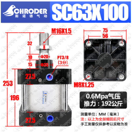 缸徑:63mm,行程:100mm。