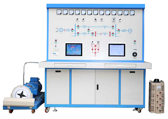 LG-DLK01型 電力系統(tǒng)綜合自動(dòng)化試驗(yàn)臺(tái)是一個(gè)自動(dòng)化程度很高的多功能電力行業(yè)培訓(xùn)設(shè)備,它由發(fā)電機(jī)組、雙回路輸電線路、無窮大電源等一次設(shè)備組成,可構(gòu)成發(fā)電機(jī)與無窮大系統(tǒng)。系統(tǒng)之間有二種不同聯(lián)絡(luò)阻抗,供系統(tǒng)實(shí)驗(yàn)分析比較時(shí)使用。該電廠培訓(xùn)考核系統(tǒng)包括一套發(fā)電機(jī)組、手動(dòng)調(diào)速、同期、線路模型、微機(jī)勵(lì)磁調(diào)節(jié)器和無窮大電源組成一個(gè)單機(jī)——無窮大系統(tǒng),可以進(jìn)行多個(gè)勵(lì)磁控制實(shí)驗(yàn),同期并網(wǎng)實(shí)驗(yàn),系統(tǒng)低頻振蕩實(shí)驗(yàn)、電力系統(tǒng)、功率特性和功率極限實(shí)驗(yàn)、電力系統(tǒng)暫態(tài)穩(wěn)定實(shí)驗(yàn)、單機(jī)帶負(fù)荷實(shí)驗(yàn)等電工儀表實(shí)訓(xùn)裝置。
