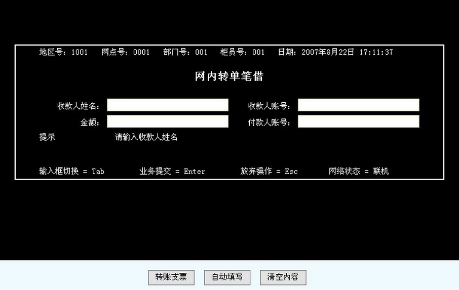學(xué)生在經(jīng)過基礎(chǔ)的實務(wù)課程學(xué)習(xí)后,將被置于一個完全仿真的現(xiàn)代商業(yè)銀行的工作環(huán)境中,面對銀行每日的工作開始進(jìn)行模擬實操。學(xué)生們將會面對虛擬的客戶提出的各種要求來進(jìn)行相應(yīng)的處理。對于學(xué)生來講,實操過程中的所有操作都是自由的,他們需要通過完全自主的思考來判斷下一步的操作。譬如客戶提出的支票轉(zhuǎn)帳請求是否受理?如果不受理理由是什么?(譬如涉及支票的鑒別、簽章的鑒別等)接受以后如何操作?同時模擬系統(tǒng)根據(jù)內(nèi)置的業(yè)務(wù)邏輯自動判斷學(xué)生操作的正確性,對其業(yè)務(wù)能力進(jìn)行實時的評價和記錄,并且將結(jié)果及時反饋給學(xué)生。通過每一步操作的自主思考和系統(tǒng)不斷的提示加強(qiáng)學(xué)生對于業(yè)務(wù)處理的理解,幫助其提高業(yè)務(wù)操作的熟練程度,并且培養(yǎng)其判斷分析能力。實操訓(xùn)練的內(nèi)容完全參照日常銀行業(yè)務(wù)操作所涉及的范圍,同時也可以根據(jù)實驗課程主題的要求進(jìn)行具體的靈活配置。