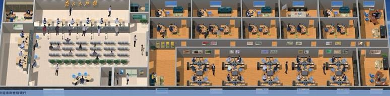 LG-RCJ03A 現(xiàn)代商業(yè)銀行模擬教學(xué)平臺對于現(xiàn)代商業(yè)銀行的工作環(huán)境進(jìn)行全面仿真,包括營業(yè)大廳的布局,對公對私的工作臺、貸款管理部門的辦公室等全3d的建筑仿真;工作人員日常業(yè)務(wù)使用的綜合業(yè)務(wù)系統(tǒng)等核心業(yè)務(wù)軟件和各種業(yè)務(wù)單據(jù);簽章、電腦、打印機(jī)、點鈔機(jī)、票箱、打碼機(jī)、壓數(shù)機(jī)等辦公設(shè)備。并且在模擬實操中讓學(xué)生來熟悉和使用。