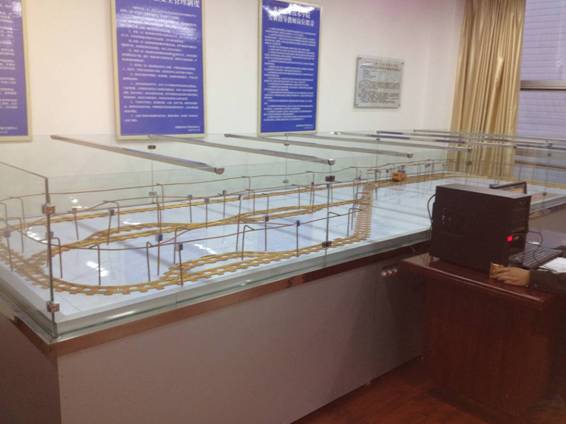LG-MXD04型 井底車場(chǎng)及電機(jī)車信、集、閉系統(tǒng)演示裝置能夠反映出井底車場(chǎng)主要巷道和主要硐室,井底車場(chǎng)與井筒、運(yùn)輸大巷的聯(lián)系及線路布置。能直觀演示信、集、閉系統(tǒng)的布置方式、程控、工作原理以及電機(jī)車在井底車場(chǎng)運(yùn)行方式,可對(duì)道岔進(jìn)行控制。系統(tǒng)采用微計(jì)算機(jī)或PLC控制。