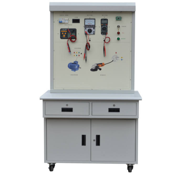 (2)實(shí)訓(xùn)臺(tái)本把絕緣電阻測(cè)試所需要的數(shù)字兆歐表、測(cè)量對(duì)像電動(dòng)機(jī)和磨光機(jī)等器件并采用安全接線柱引出端子,同時(shí)把電路檢測(cè)常用到的指針萬(wàn)用表和數(shù)字萬(wàn)用表裝嵌到實(shí)訓(xùn)臺(tái)上,學(xué)生可直接實(shí)訓(xùn)臺(tái)的儀器來(lái)測(cè)驗(yàn)電動(dòng)機(jī)和磨光機(jī)的絕緣電阻,通過(guò)本實(shí)訓(xùn)臺(tái)的訓(xùn)練可以讓學(xué)生學(xué)會(huì)的數(shù)字兆歐表使用方法和注意事項(xiàng),快速了解數(shù)字兆歐表的工作原理,學(xué)會(huì)運(yùn)用數(shù)字兆歐表正確測(cè)量設(shè)備的絕緣電阻。