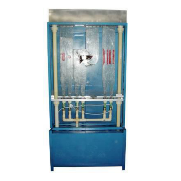 演示流體流經橋墩、圓柱體、直角彎道、圓角彎道和突縮、突擴及漸縮、漸擴管道時漩渦區(qū)的變化,并可觀察到典型的卡門漩渦。